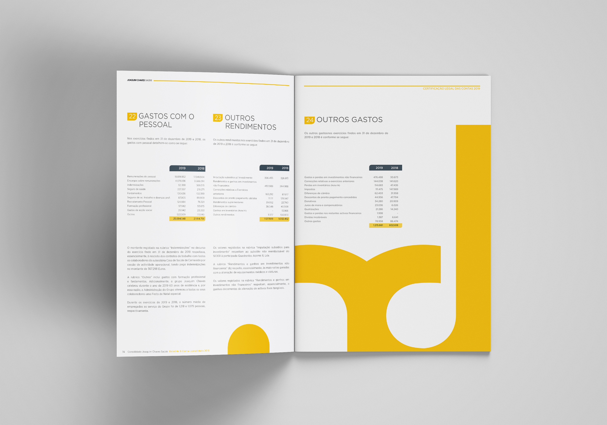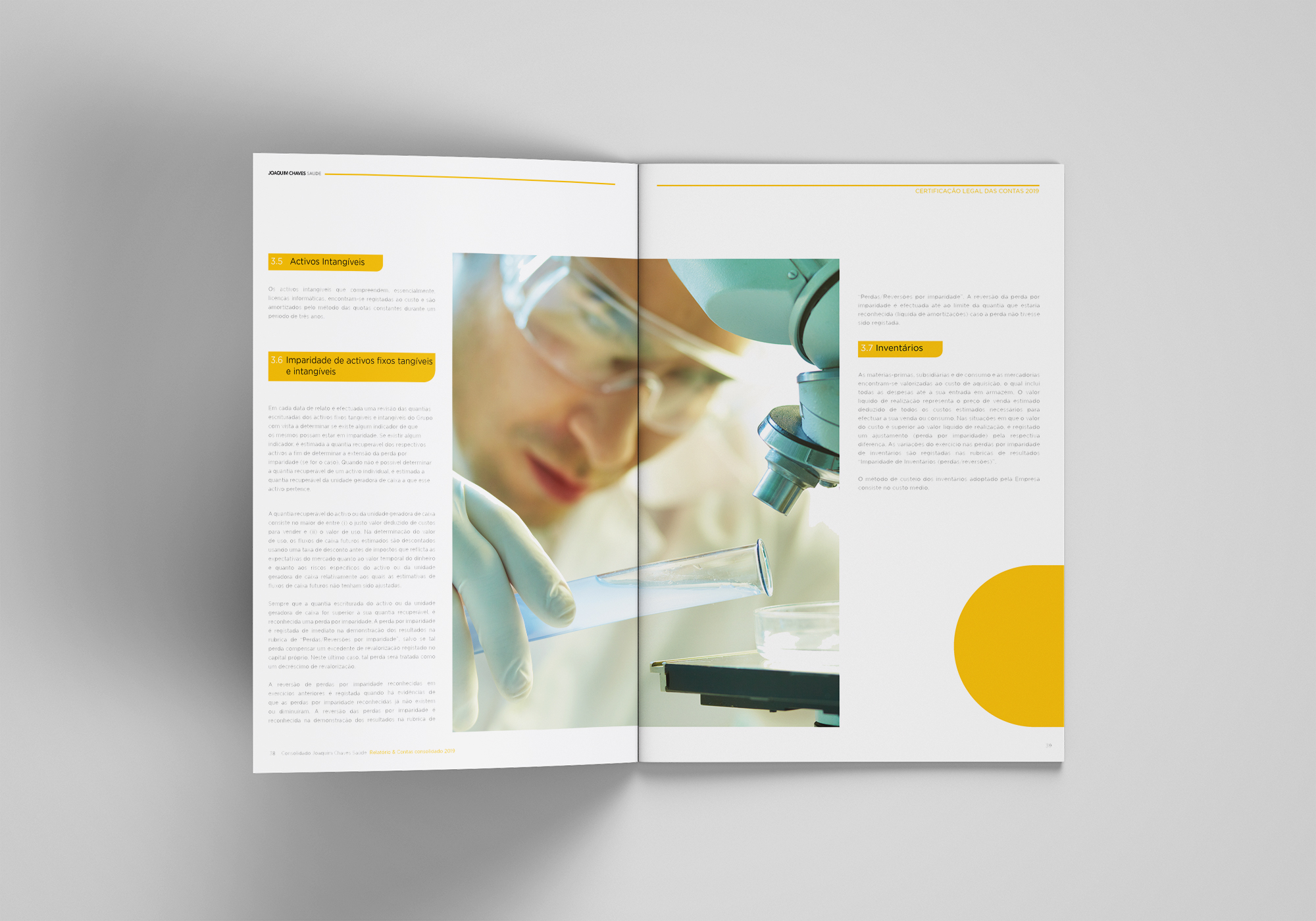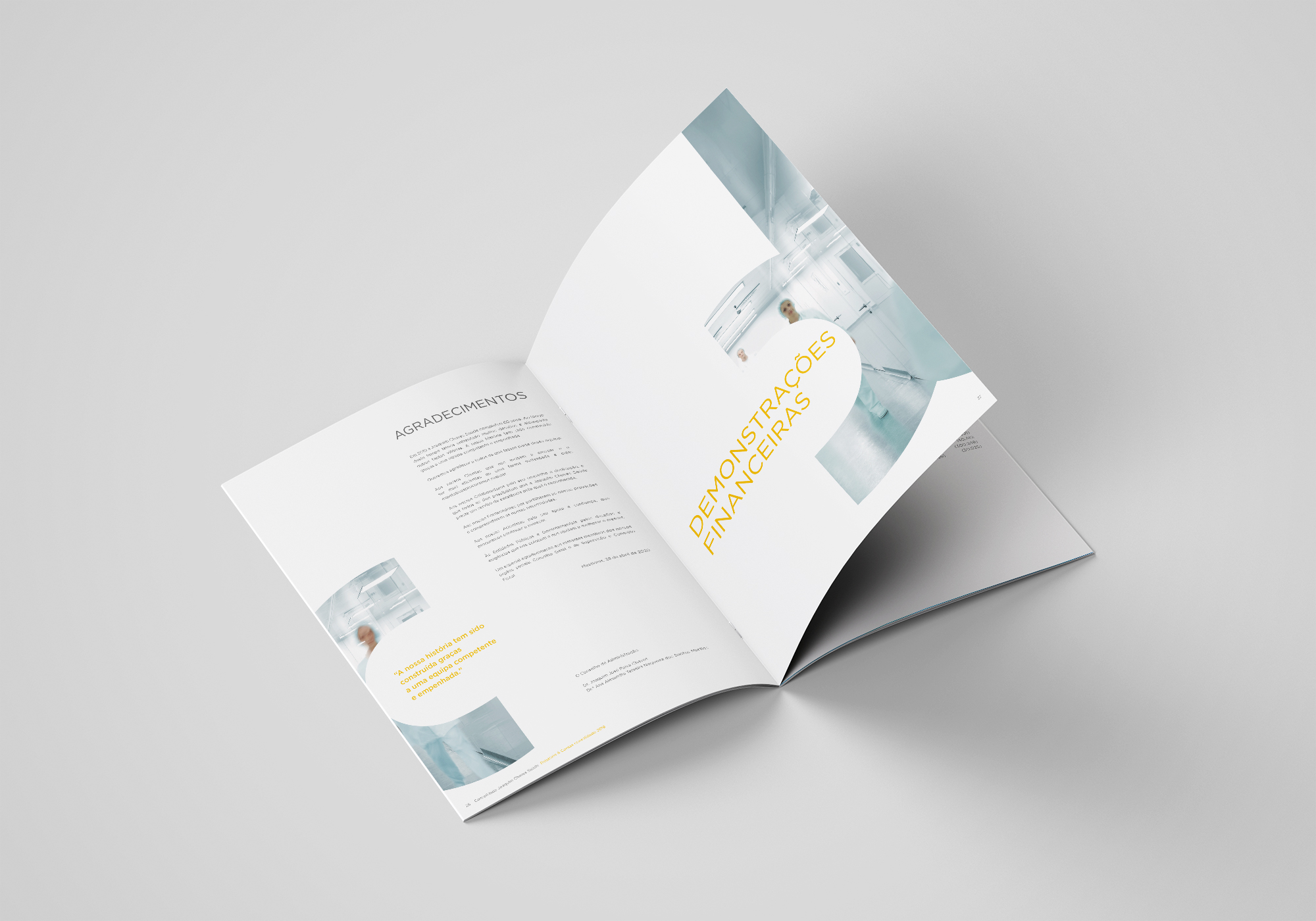 Desenvolvimento do design e paginação do Relatório de Contas.